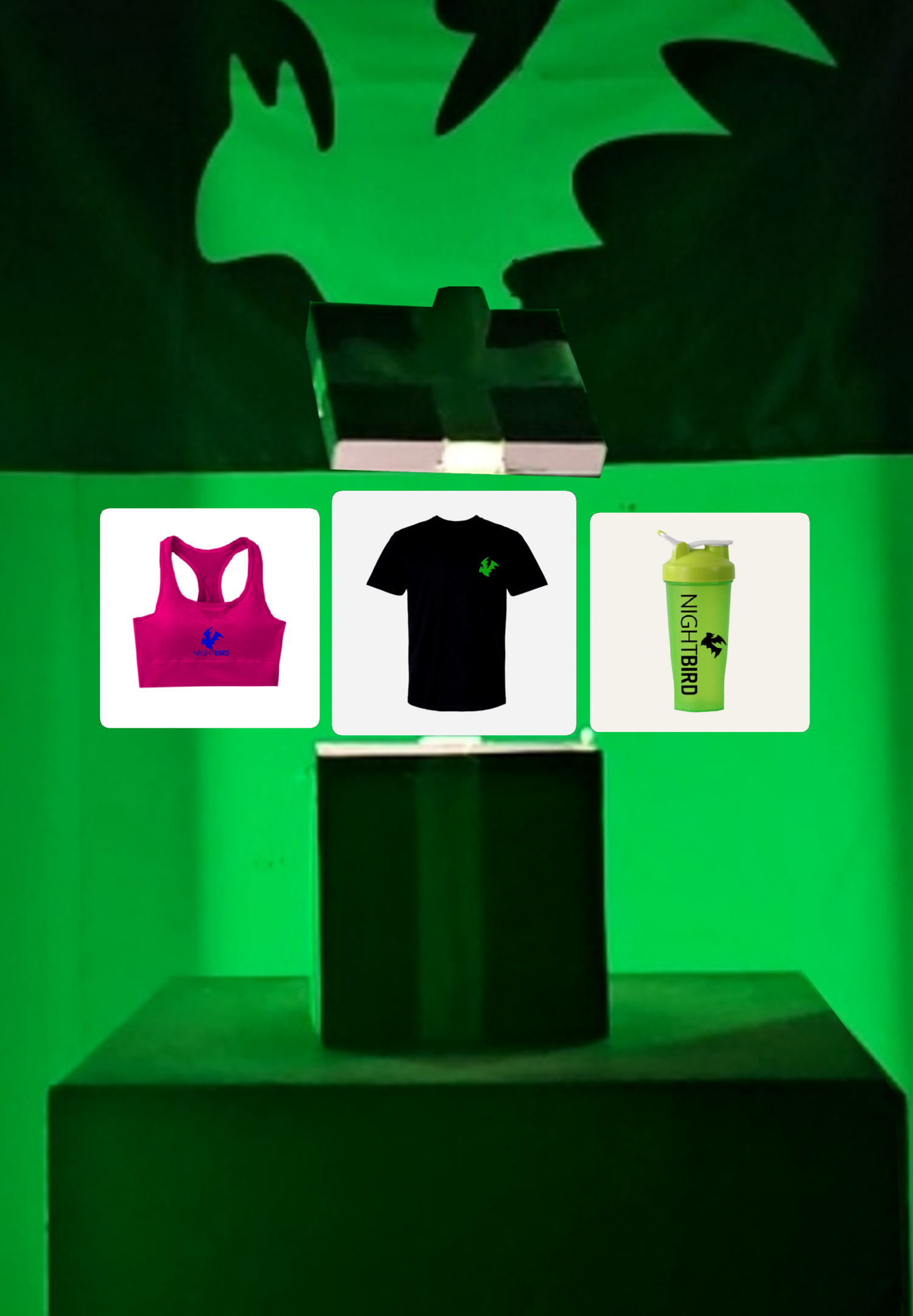 À l'achat de 250 $ sur les produits Nightbird, tu obtiens ta commande dans une boite-cadeaux et un article gratuit de notre choix comme un shaker, un T-shirt, une brassière de sport ou un short, le tout sans frais de livraison. Un cadeau idéal à offrir à un(e) ami(e) ou pour soi-même.